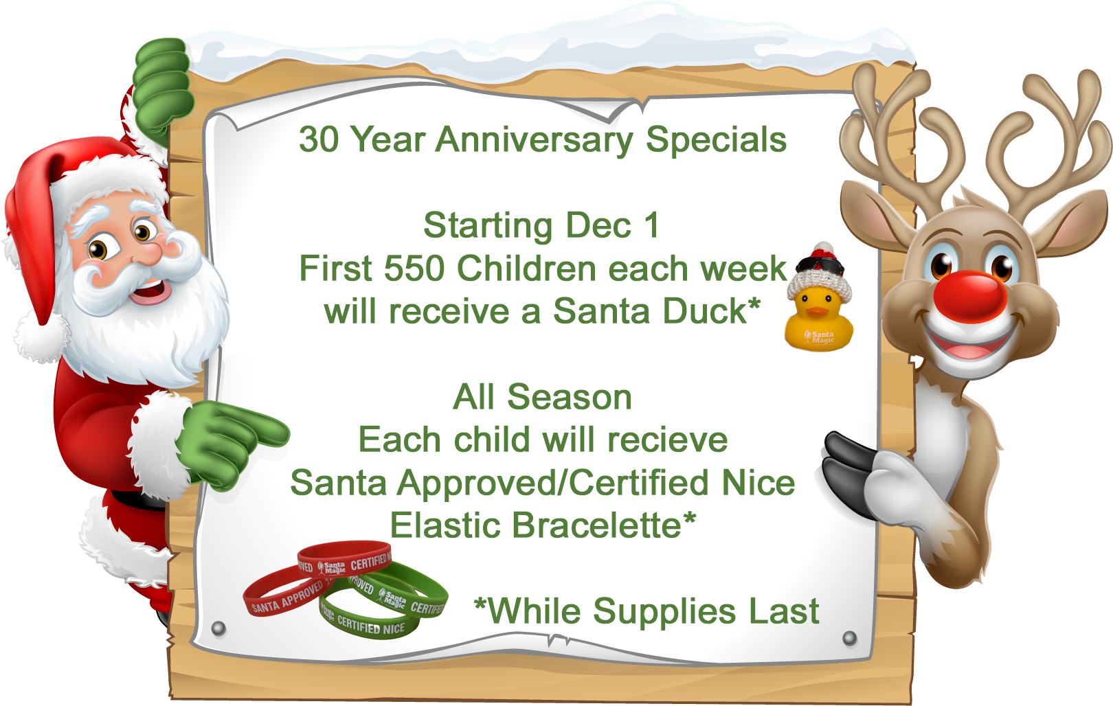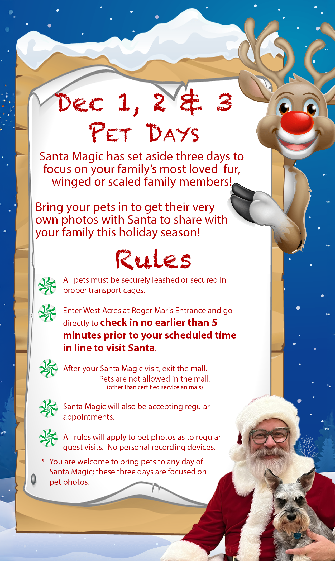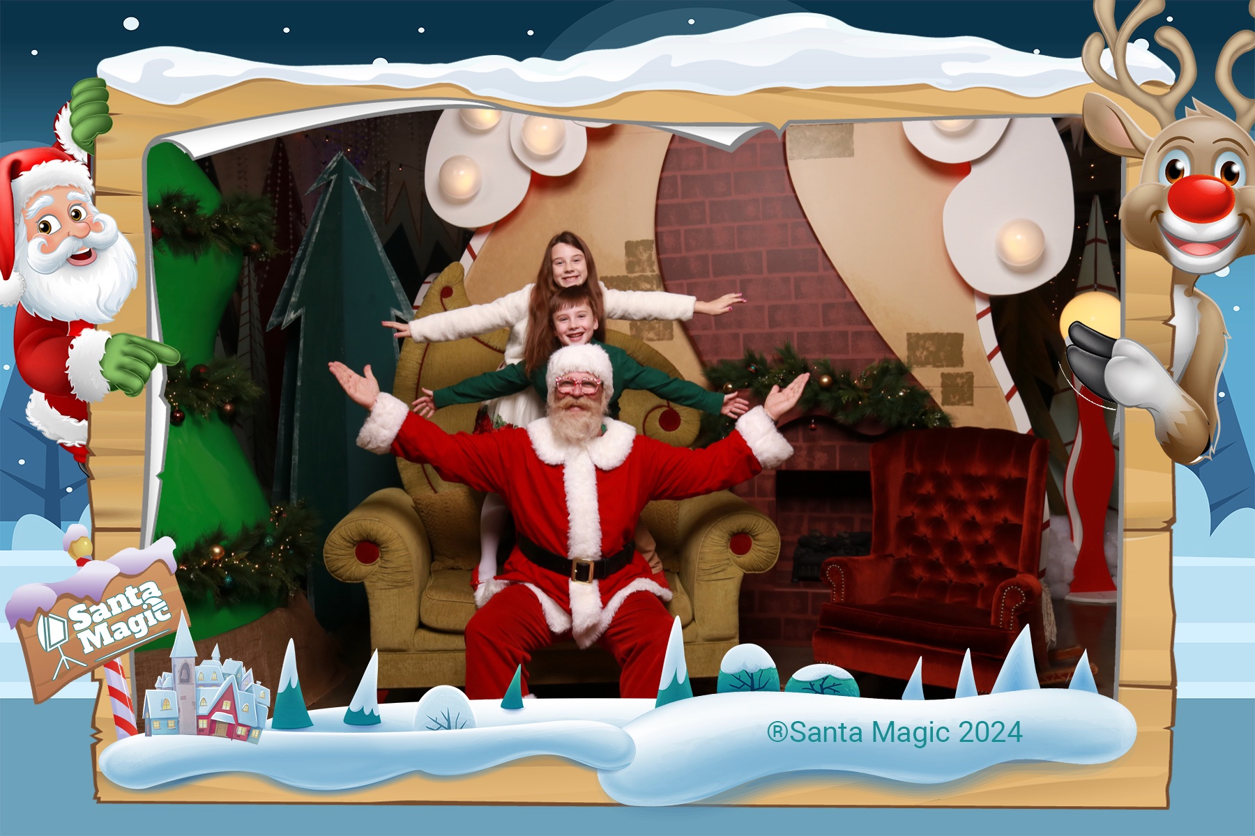 Located adjacent to Best Buy in West Acres Shopping Center, Santa Magic features a sleigh set and a living room set for your Santa visit.