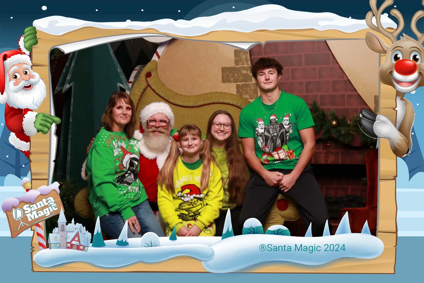 We respect the privacy and wishes of our guests and know that not everyone is comfortable with sitting on Santa’s knee and some are. We have put together a few option as well as some fun new poses!