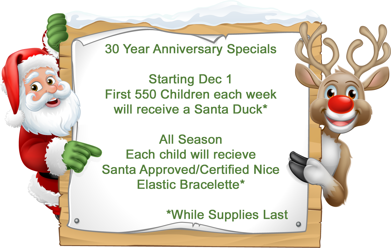 Santa will be in the Living Room set for the first 30 minutes of each hour and in the Sleigh set the second 30 minutes of each hour.