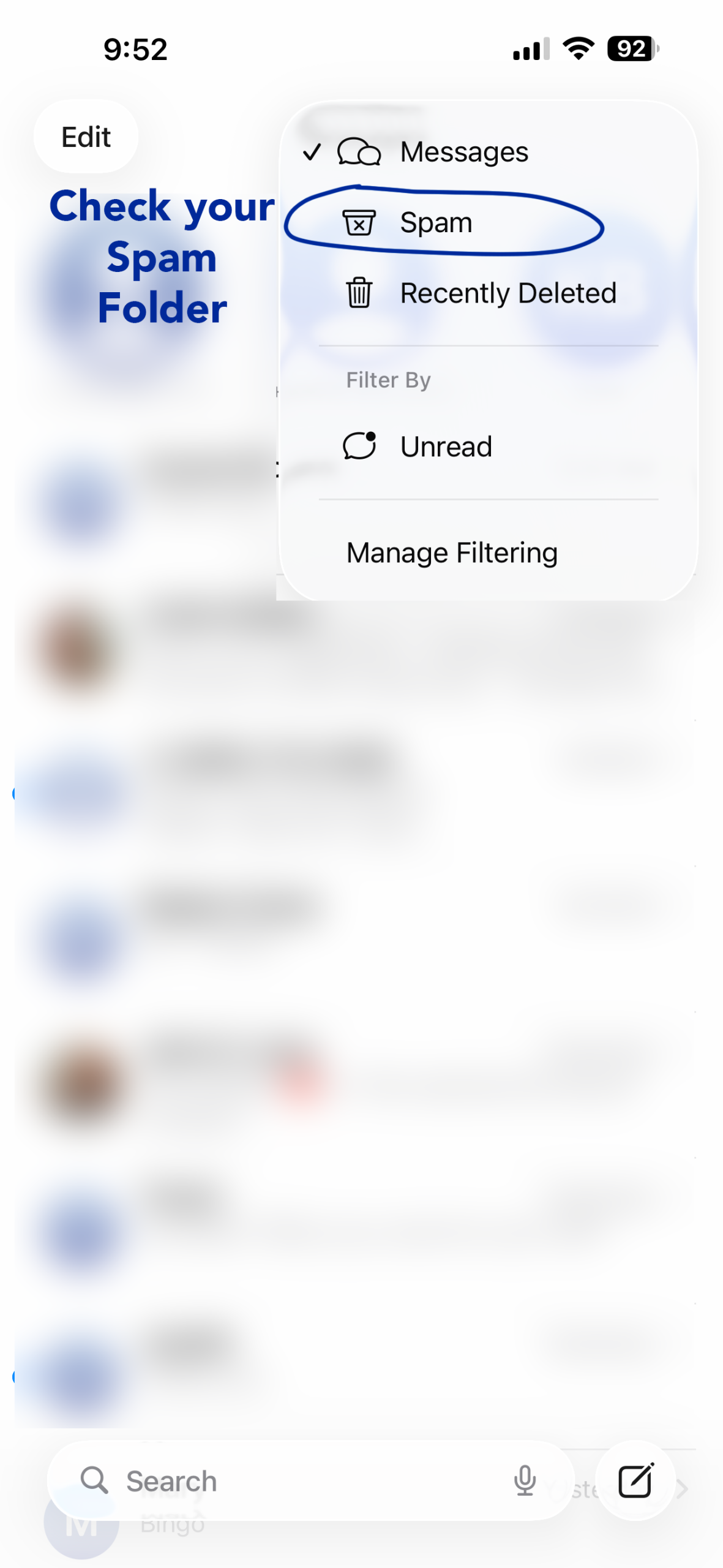 - Tap Blocked messages to see filtered texts.